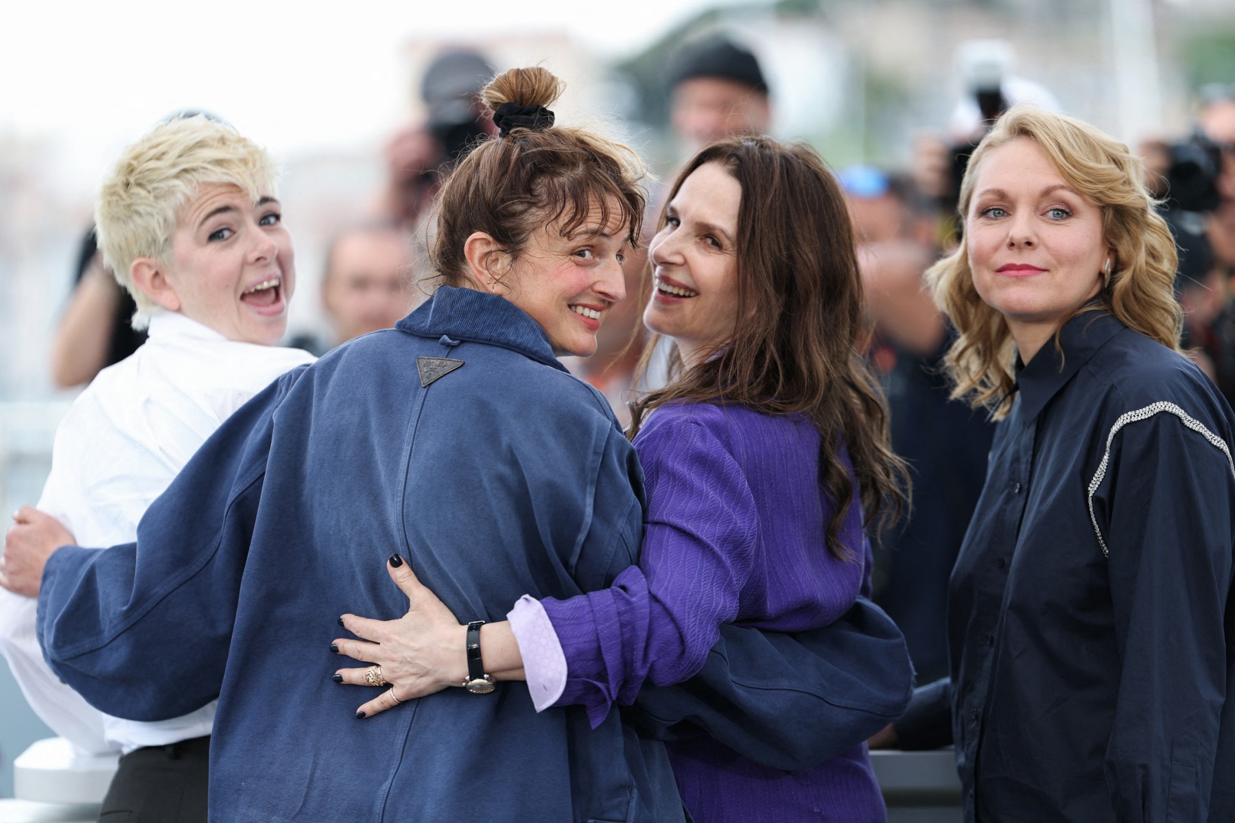 • 2e photo : De gauche à droite, la réalisatrice, scénariste et directrice de la photographie britannique Molly Manning Walker, la réalisatrice italienne et membre du jury du 78e Festival de Cannes Alice Rohrwacher, l’actrice française et présidente du jury Juliette Binoche, et la réalisatrice, scénariste et présidente du jury de la Cinéfondation Maren Ade, le 17 mai 2025. © Sameer Al-Doumy / AFP