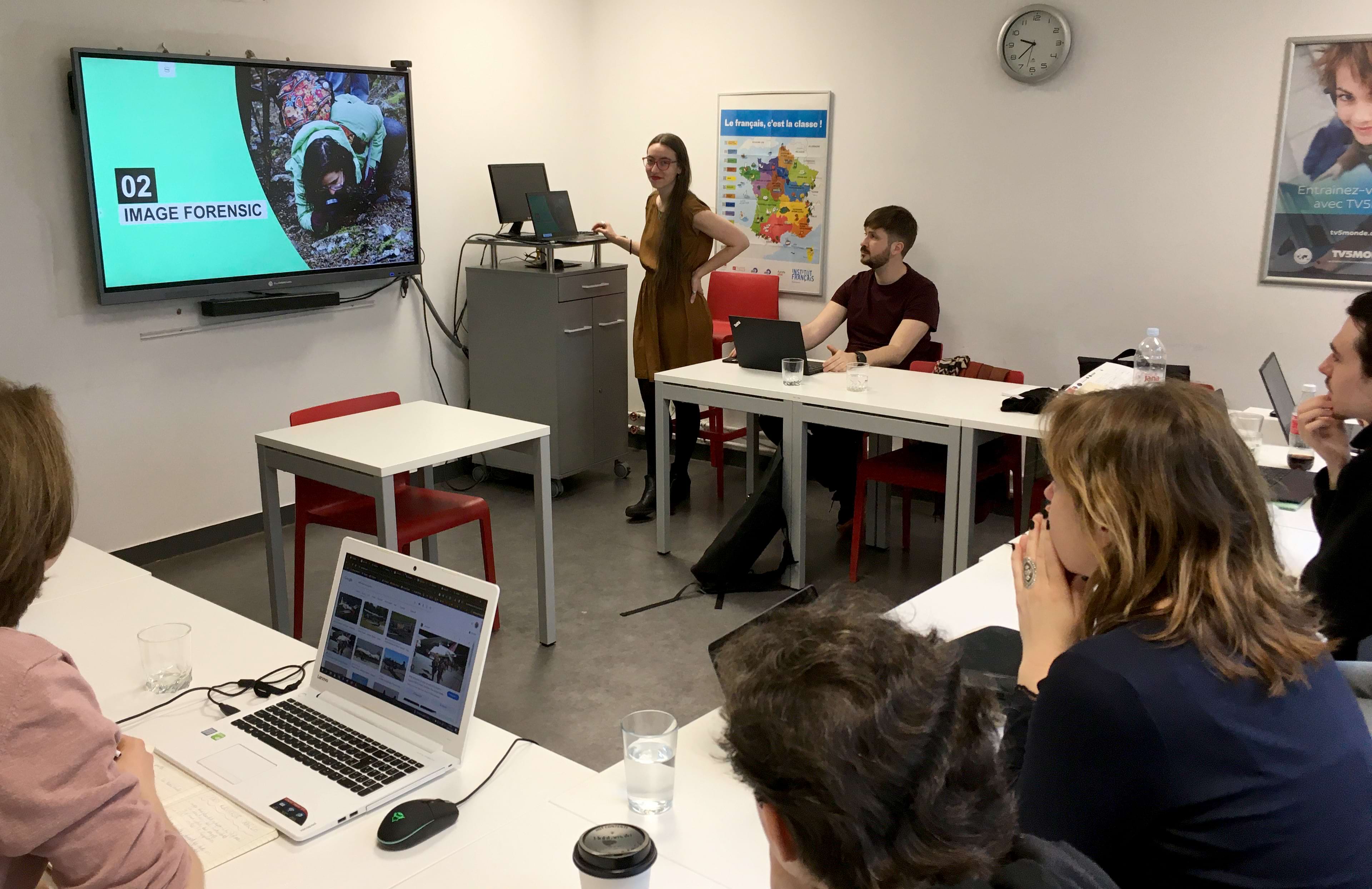 Les sessions étaient animées par Marion Dautry, accompagnée de ses collègues Rossen Bossev, Paula Cabescu et Ede Zaborszky, experts dans la lutte contre la désinformation en ligne qui circule respectivement en bulgare, roumain et hongrois.