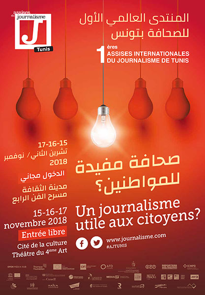 Pendant trois jours, Tunis sera la capitale du Journalisme ! 500 journalistes venus de 30 pays vont se rassembler à la Cité de la Culture et au théâtre du 4ème Art pour débattre avec les citoyens de l’information dont nous avons besoin pour faire vivre notre démocratie.