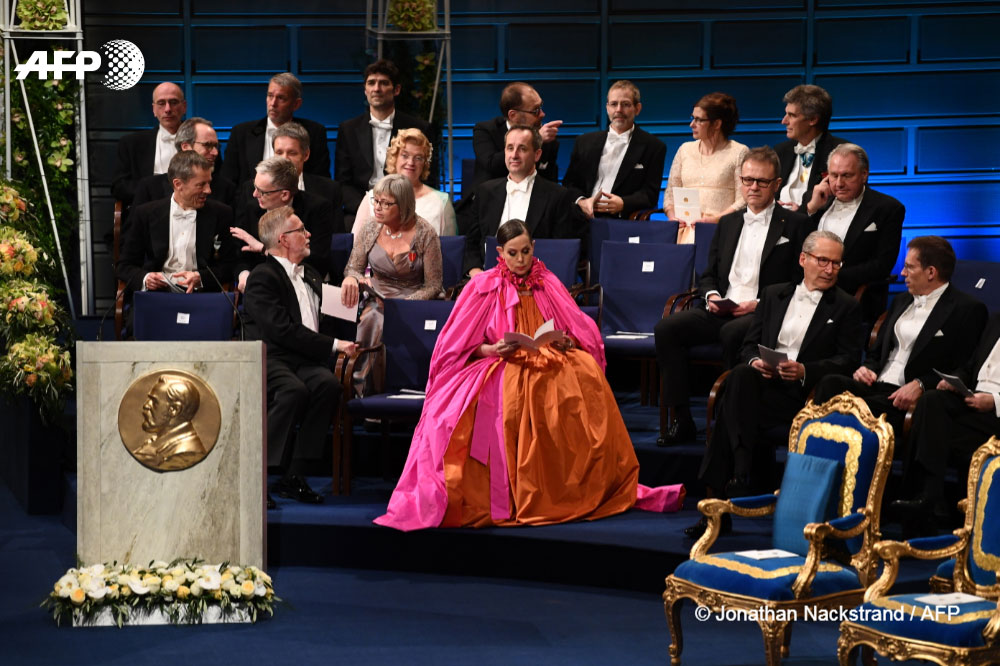 10/12/2018 - Stockholm, Suède - L'essayiste Sara Danius (au centre) siège dans la salle de concert de Stockholm, avant la cérémonie de remise du prix Nobel 2018. © Jonathan Nackstrand / AFP